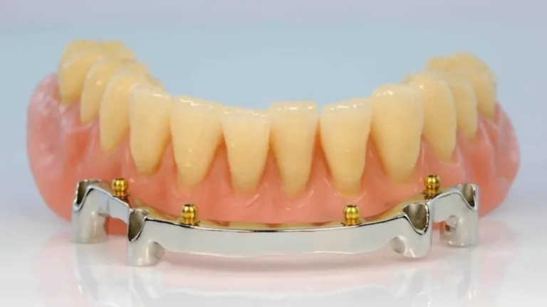 A metal bar supported over existing gums a denture is a dental device that can easily replace your mouth or existing dental structure. The device contains clips attached underneath existing gums missing teeth and secured by dental implants onto metal bars.