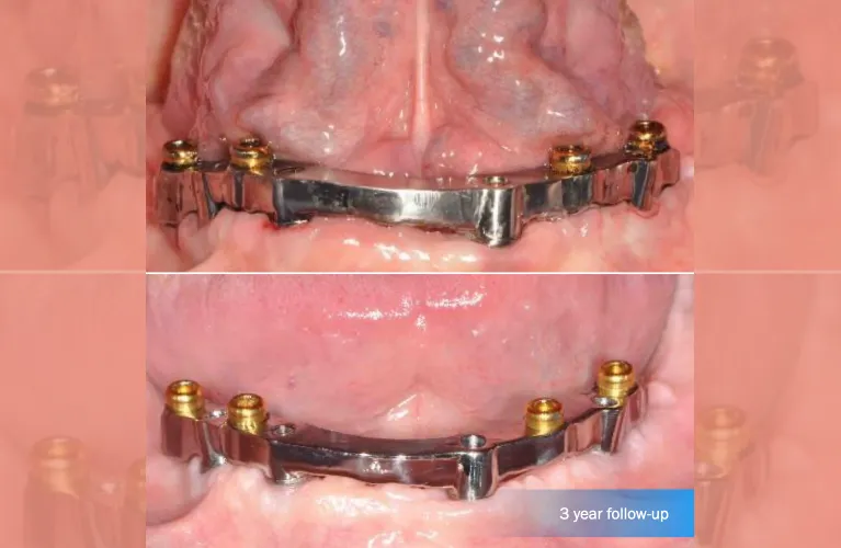 Initially planned surgical treatment procedure which involves the extractions surgical treatment procedure of the residual teeth and prosthesis solutions using 2 lateral bars to achieve optimal stability of the teeth in the upper front implant and to ensure the stability.