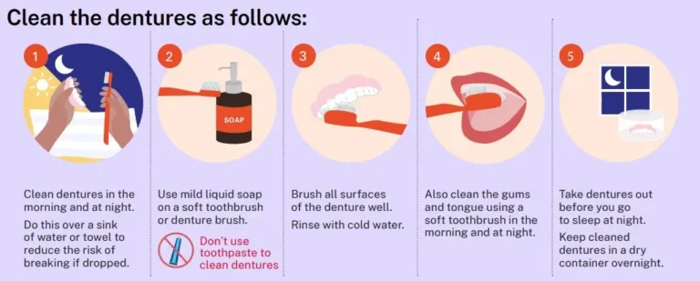 It takes 3-5 weeks before wearing dentures to clean up and clean gum tissue, teeth and roof. You should rinse out the denture before brushing.
